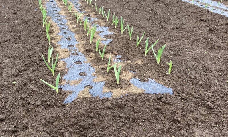 ニンニクの芽が出てきました。